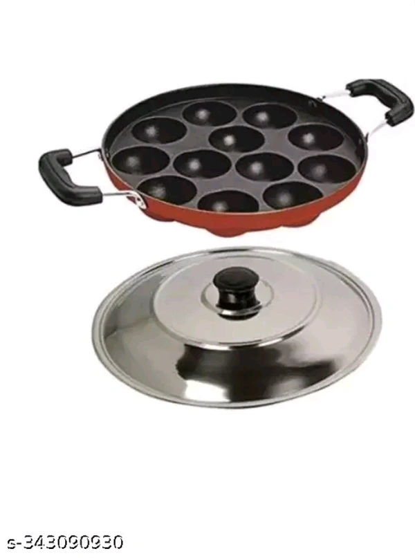 12 Cavity Appam Makar Paddu Pan Paniyaram Patra With Lid 1 L Capacity 22 Cm Diameter