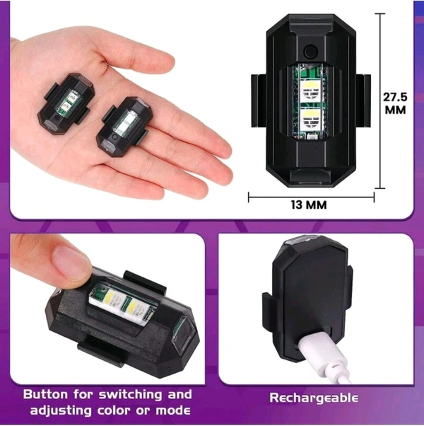Aircraft Strobe Light for Helmet, Bicycle, Bike, Car, Truck, Drone, Etc - 7 Colors, 30 Modes LED Safety Light (5 V, 12 W) (Pack of 1)