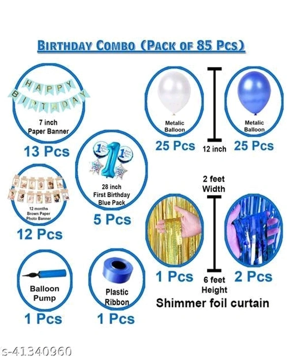 pack of 85 HB V-cut,50 ballons,1pump,ribin,3 certains,no-1 foil Your little one will love celebrating their birthday with this decoration kit.