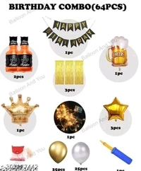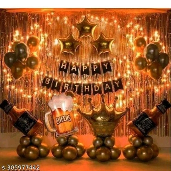 Happy Birthday Decoration kit : 1 Happy Birthday Banner , 50pcs HD Metallic Balloons (Multicolor 70pcs Combo set with crownn and star foil balloon ) gold 3 Big Size Curtain with Ribbon included