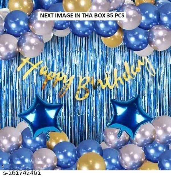 Gold banting banner 2 star blue 2 blue foil curtian & blue gold silver 30 pcs balloon