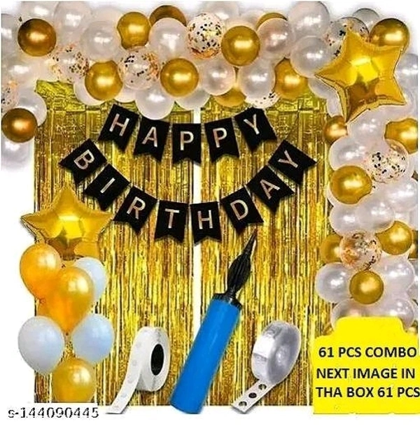 Name: Happy Birthday Decoration Combo of 33 Pcs Red Banner, 2 Gold Curtain 2 Red Star Foil Balloon And 25 Metallic Balloon 3 Confetti Balloon.