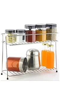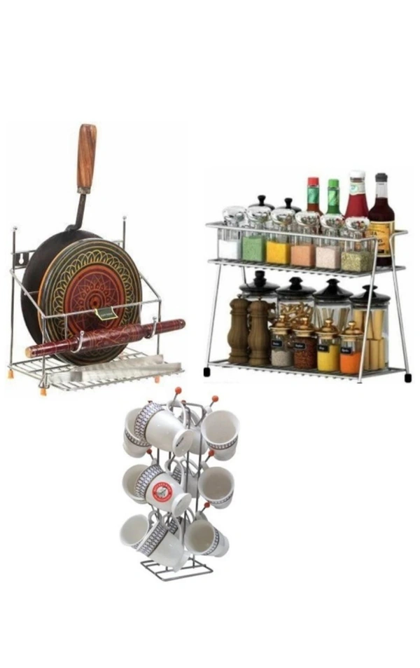 Combo Pack Of Stainless Steel 4 In 1 Chakla Belan Stand + 2 Layer Spice Rack + Tea & coffee cup Stand