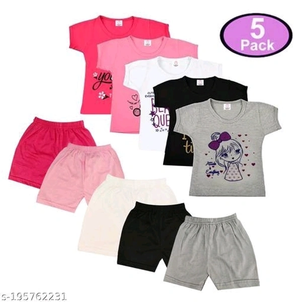 Girls Cotton T-shirt & Pant Set (Pack Of 5)