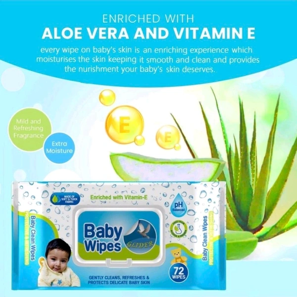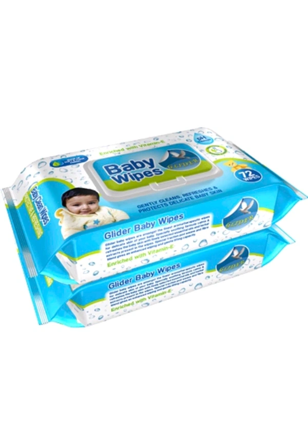 GLIDER Baby Wipes Moisture Lock Flip-Top Aloe Vera & Vitamin E|pH balanced ( Pack of 2 )(144 Wipes)