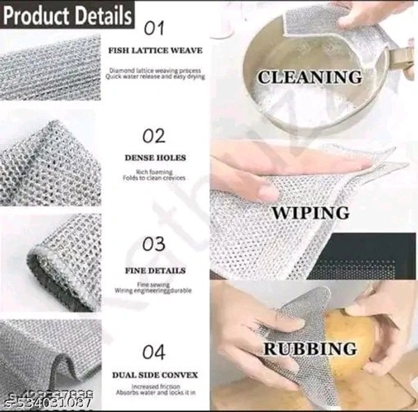 Non Scratch Dish Wash Cloth- Go Multipurpose Wire & Microfiber Dishwashing Rags for Wet and Dry, Easy Rinsing, Reuse Cleaning Cloth for Kitchen, Sinks, Pot & Pans.