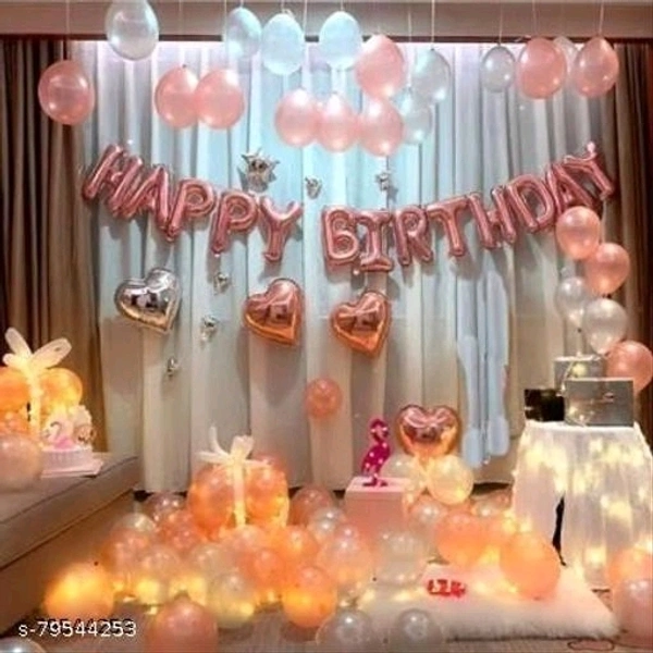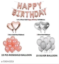 Name: Rose Gold Balloon Decoration Items for Birthday - 1pc Happy Birthday Letters, 30pc Metallic Balloons (Silver & Rosegold), 4pc Heart Shape Balloons,