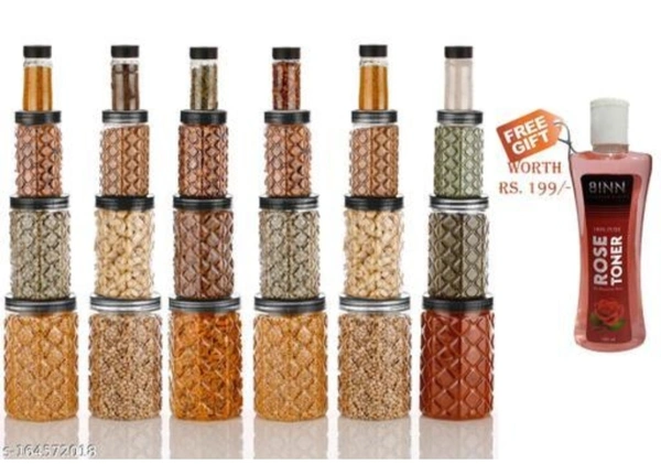 With FREE GIFT(ROSE WATER). It jars will fit even in small place.It perfectly fits your cupboard, you will get perfect visibility of items. You can store all variety of spices, cereals, breakfast edibles such as chocos, cornflakes and sometimes even you can store oil. All in one cereal jar serves your needs. Long-Lasting, Sturdy, Scratch Resistant & Unbreakable Container.Air Tight PET Containers are made from US FDA approved grade polyethylene terephthalate (PET), free from any kind of odor. Odorless: The Novel material used makes the container odorless. Wide Mouth: Allows removal of contents easily. Shatterproof Body: A Novel shatterproof body making canister impact resistant. Superior Oxygen Barrier: The lid design ensures that the flavor remains intact. Keeps contents fresh for long. Ideal for dry food, pulses, spices. This air tight canister is free from BPA (Bisphenol A), which causes health hazards when it comes in contact with food and liquids. Ensuring a healthier lifestyle using Bisphenol A free products. Cautions: Hand wash only. Towel and air dry only. Do not use in abrasive cleaners and sharp utensils. Do not use in microwave. 100 Percent Food Grade and BPA Free Canisters: This air tight is free from BPA (Bisphenol A), which causes health hazards when it comes in contact with food and liquids. Ensuring a healthier lifestyle using Bisphenol A free products. Air Tight