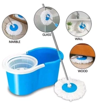 Shopglobal Run Wet 360° Spin Floor Cleaning Tech Bucket Set ( 1 Bucket,1Mop Rod Stick, 2 Refills )