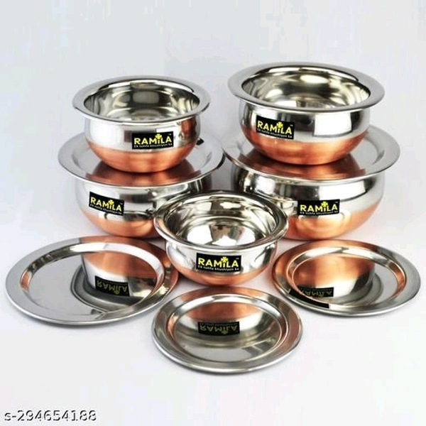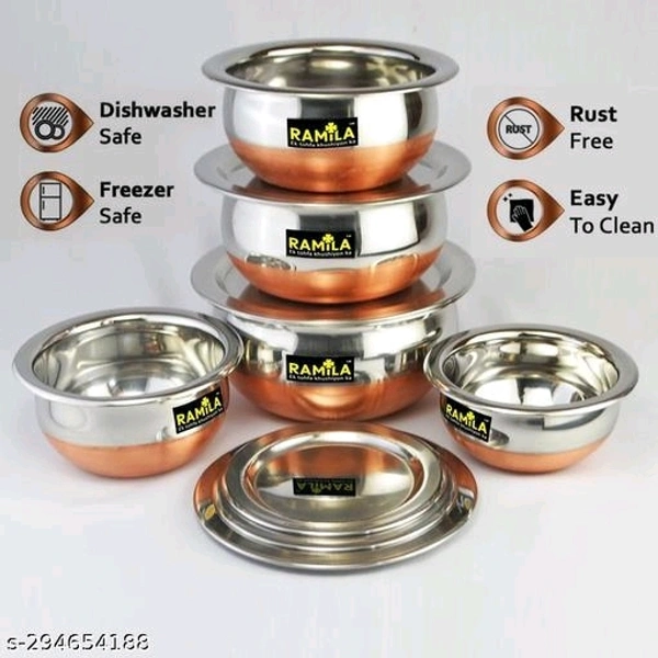 Stainless Steel Copper Base Serving Handi Set Of 5 Pcs(500ml, 800ml, 1000ml, 1200ml, 1500ml)