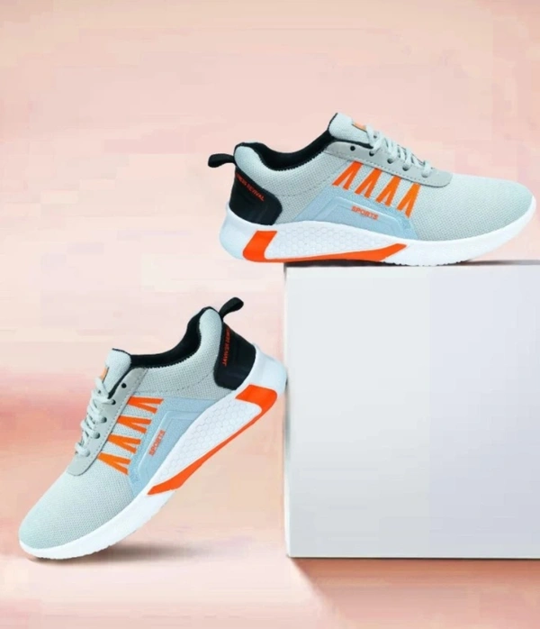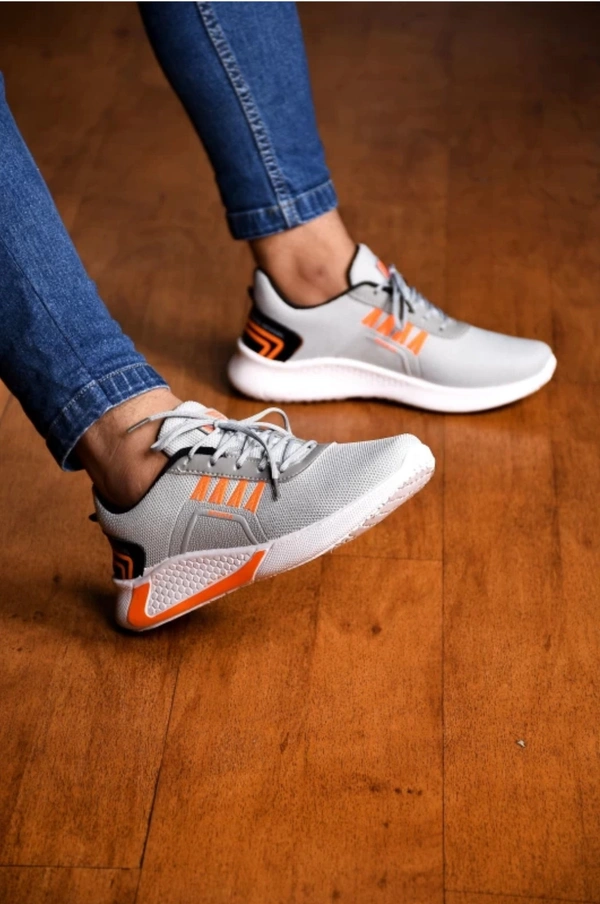Trendy Sneakers For Men ( Gray - Orange )
